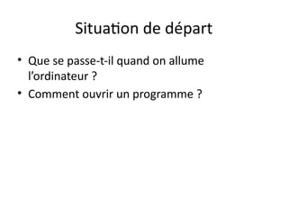 Que se passe-t-il quand on allume l’ordinateur ? • Comment ouvrir un programme ?