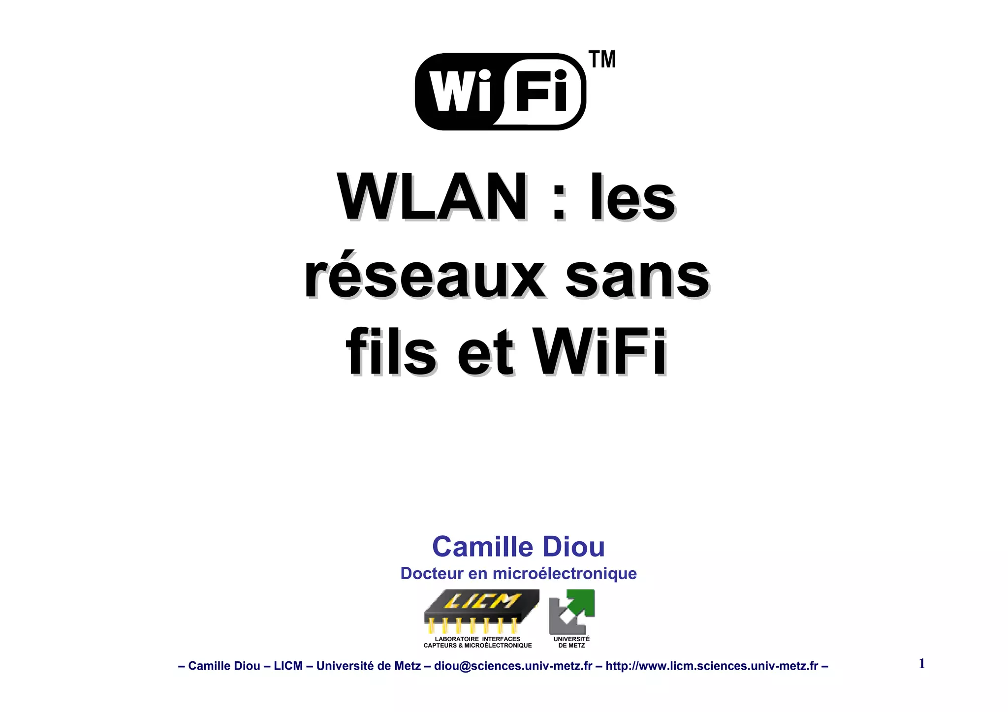 Le document présente une synthèse technique sur les réseaux WLAN, en se concentrant sur les normes IEEE 802.11 et leur architecture. Il aborde les différentes topologies réseau, les modes de fonctionnement (infrastructure et ad-hoc), ainsi que les protocoles d'accès et les aspects de sécurité liés à ces réseaux sans fils. Des détails sur les couches protocolaires, les méthodes de modulation et les mécanismes de gestion de réseau sont également inclus.