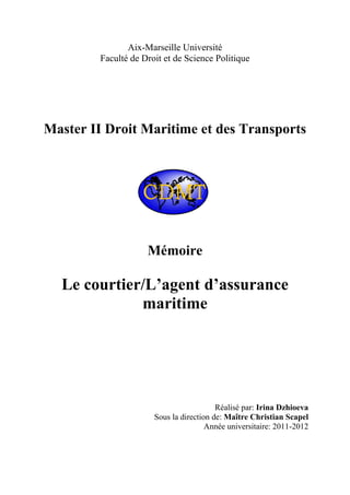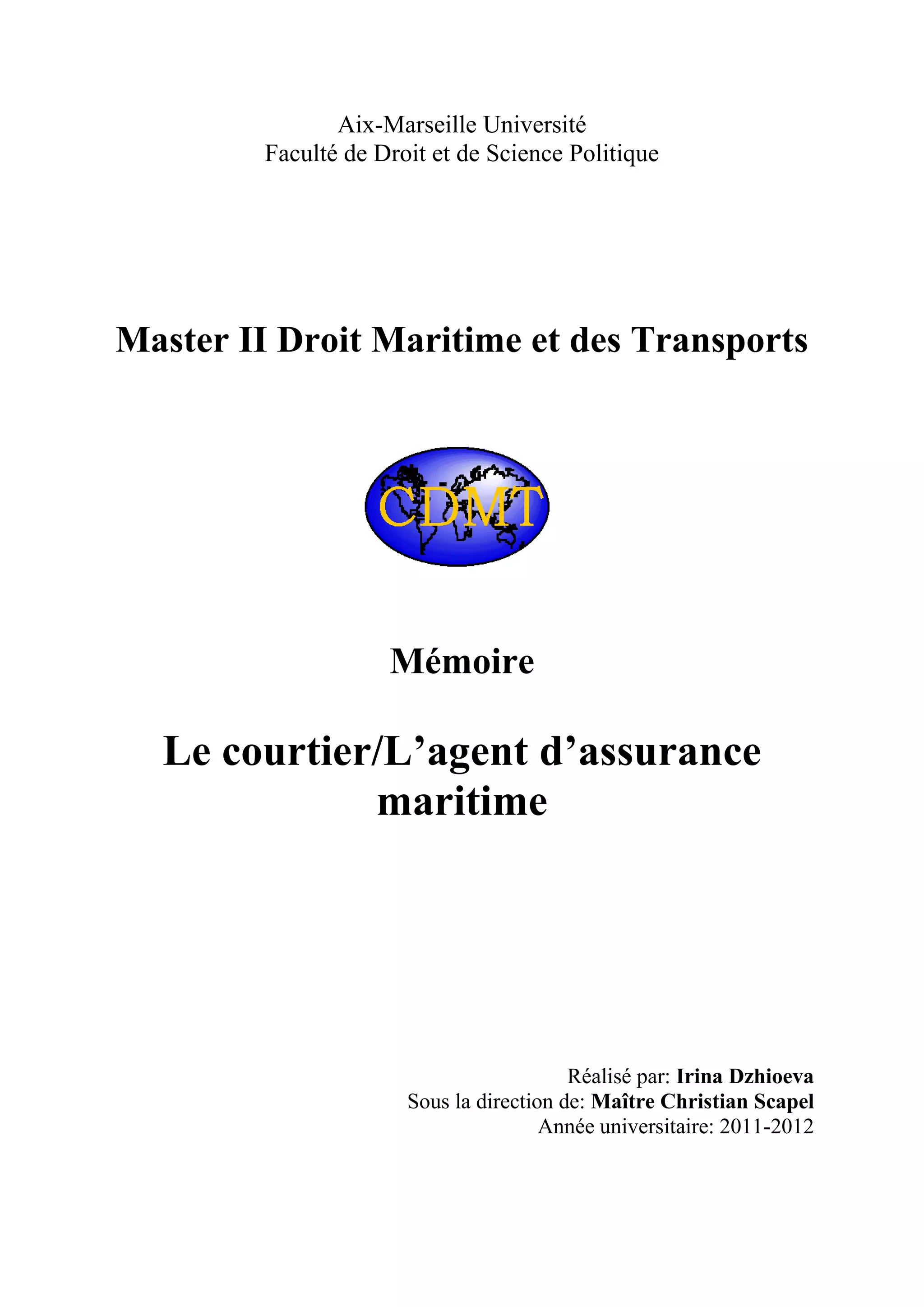 Le mémoire présente une analyse des rôles distincts du courtier et de l'agent d'assurance maritime, en soulignant que malgré leurs similitudes en tant qu'intermédiaires, ils possèdent des statuts juridiques différents. Le courtier agit en tant que mandataire des assurés tandis que l'agent représente les compagnies d'assurance, une distinction qui est souvent floue dans la législation actuelle. L'objectif est de démontrer la nécessité de préserver les deux métiers sur le marché de l'assurance maritime tout en équilibrant leurs fonctions respectives.