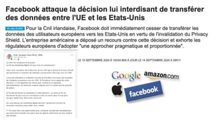 Le document traite des codes de conduite et de certification en matière de protection des données personnelles selon le RGPD, soulignant l'importance d'élaborer des normes spécifiques pour différents secteurs. Il explique également que des mécanismes de certification peuvent être mis en place pour démontrer la conformité des responsables du traitement et des sous-traitants, tout en précisant que ces normes doivent respecter des critères rigoureux en lien avec la législation de l'UE. Enfin, il aborde les implications des décisions judiciaires récentes concernant le transfert de données vers les États-Unis et la nécessité d'évaluer les garanties adéquates dans ces transferts.