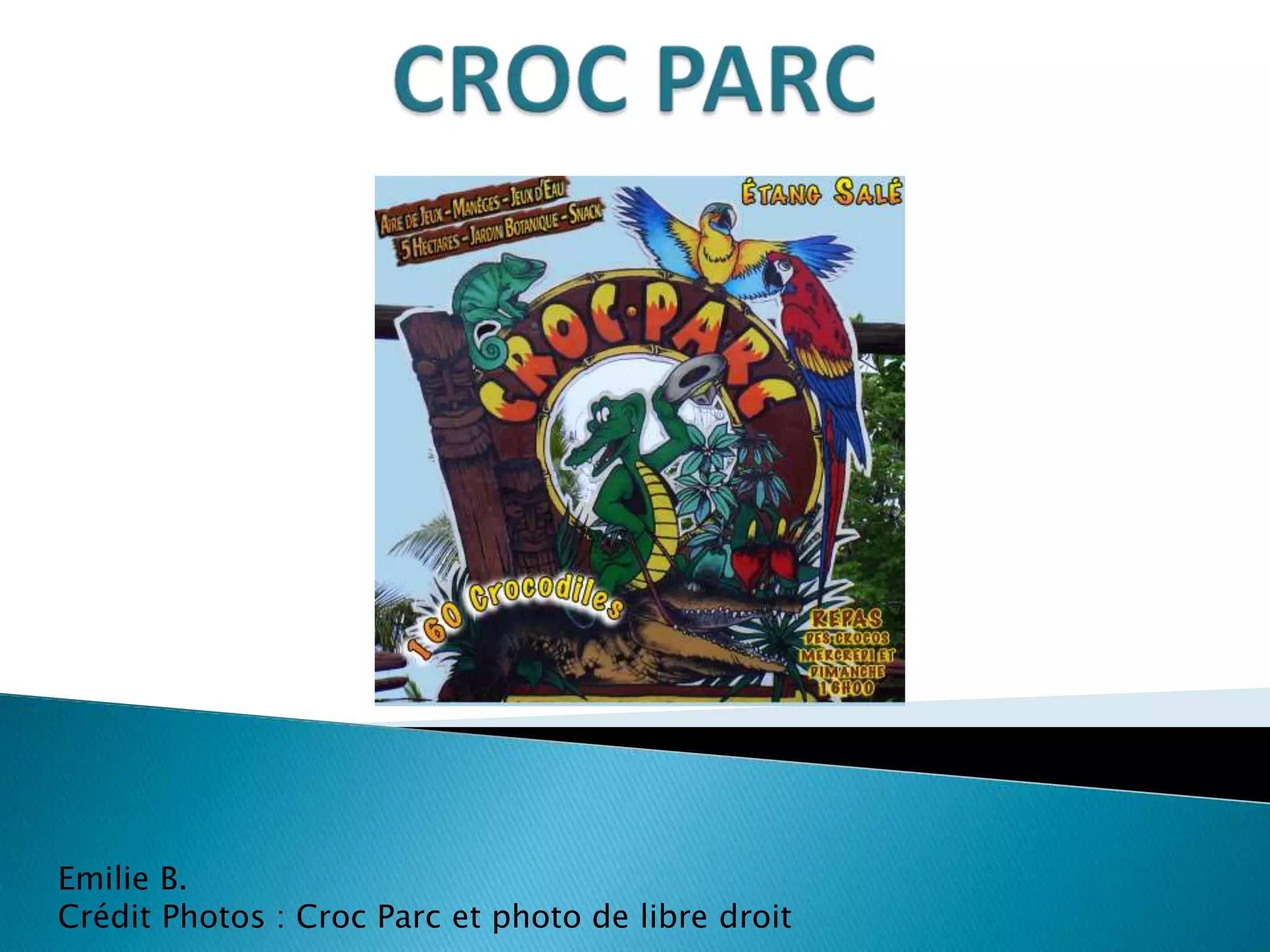 Croc Parc est un parc animalier de 5 hectares situé à Étang-Salé, dédié à la conservation des crocodiles du Nil et à la biodiversité, ainsi qu'à la détente familiale. Il propose diverses attractions, un espace de jeux pour enfants, des événements culturels et des services de restauration. Le parc est ouvert tous les jours de l'année de 10h00 à 17h30, avec des tarifs d'entrée adaptés aux adultes et aux enfants.