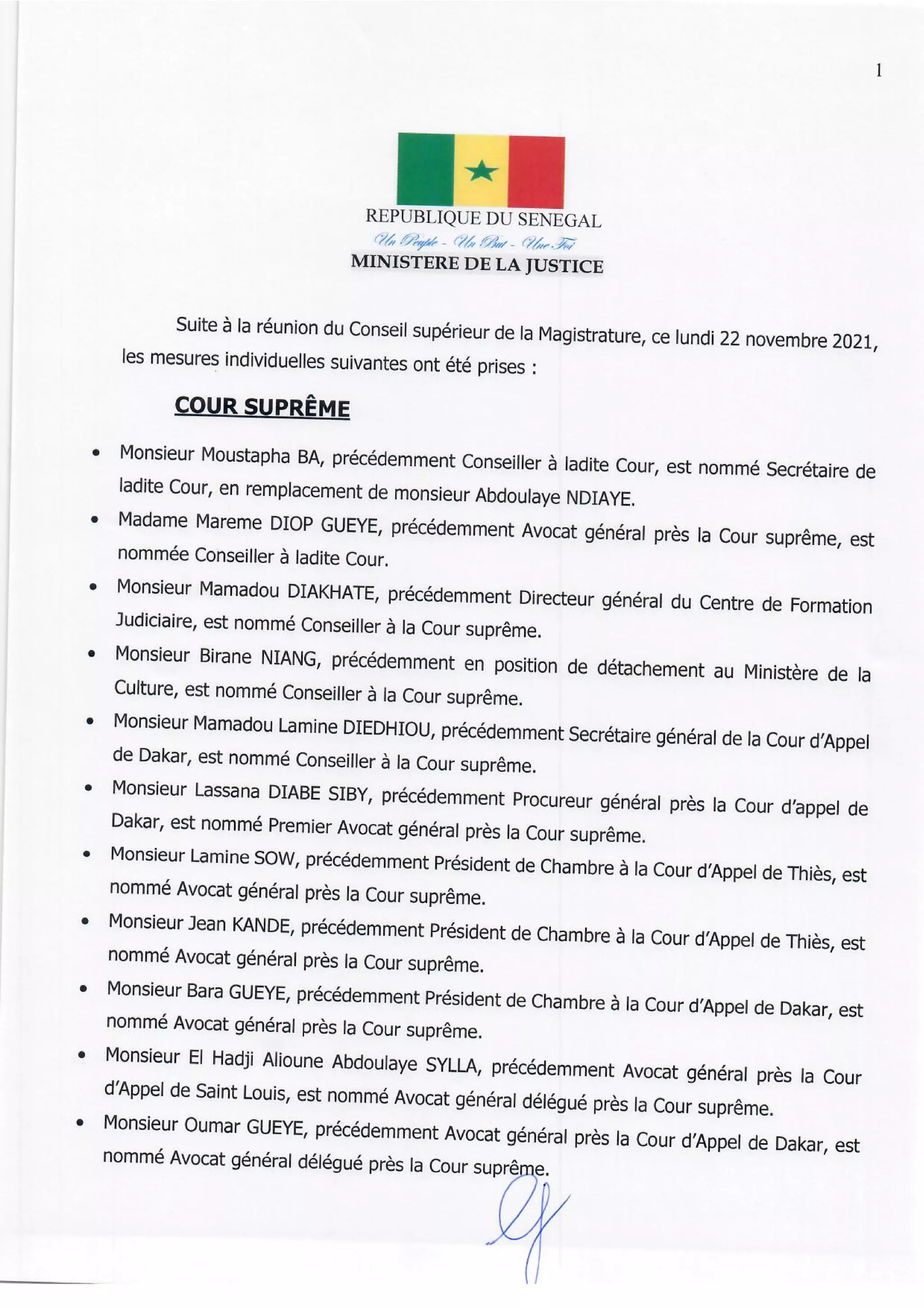 SÉNÉGAL : Les nominations dans la magistrature. PDF