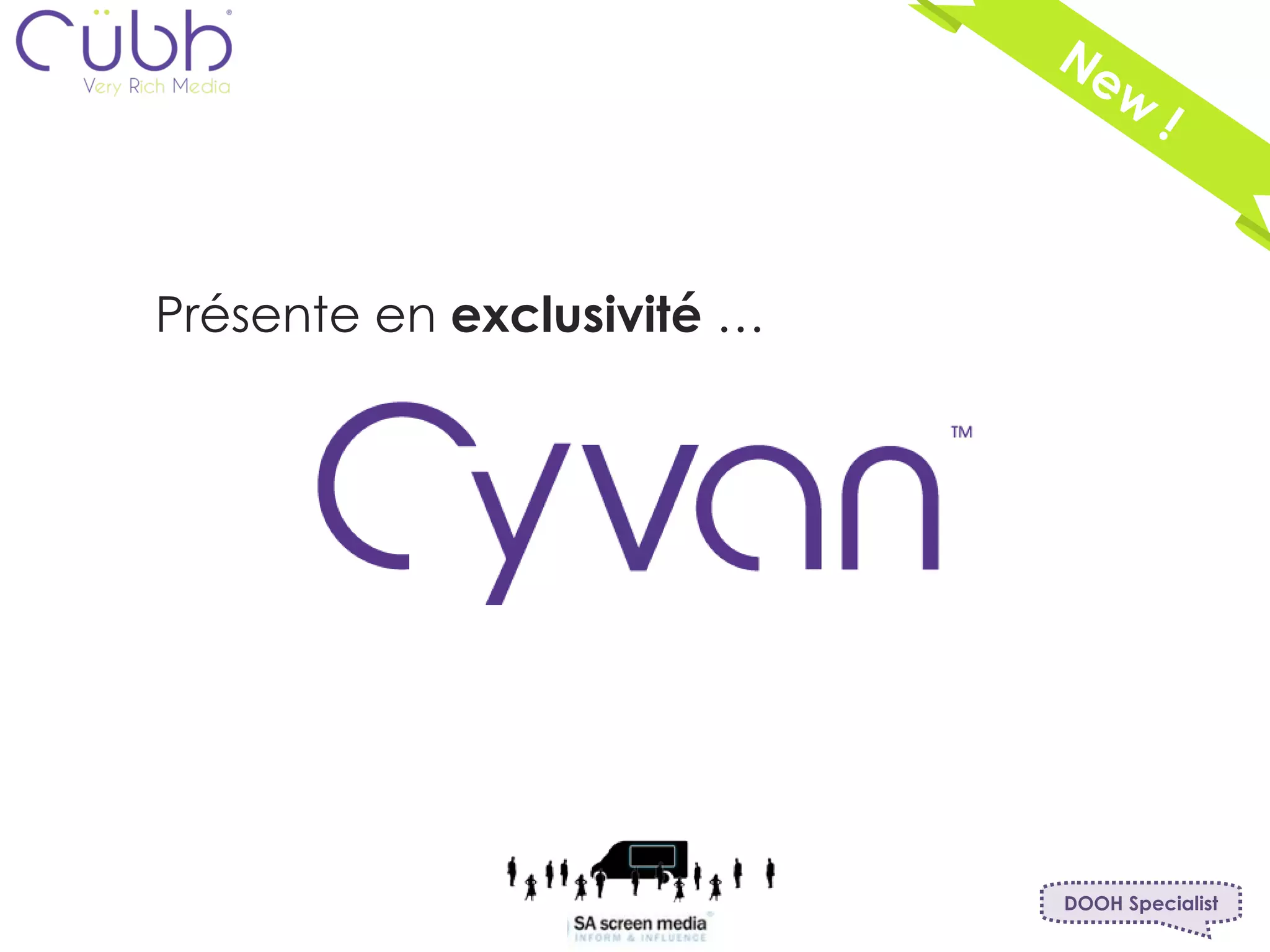 Le document présente l'offre exclusive de cübb, intégrant des technologies telles que le 3G, le Bluetooth, et des jeux vidéo pour une expérience utilisateur interactive par le biais du véhicule digital digiadvan. Il fournit également des spécifications techniques, des options de service, et des tarifs associés à l'utilisation de ces technologies. Les concepts de cübb sont protégés par des brevets et des marques communautaires.