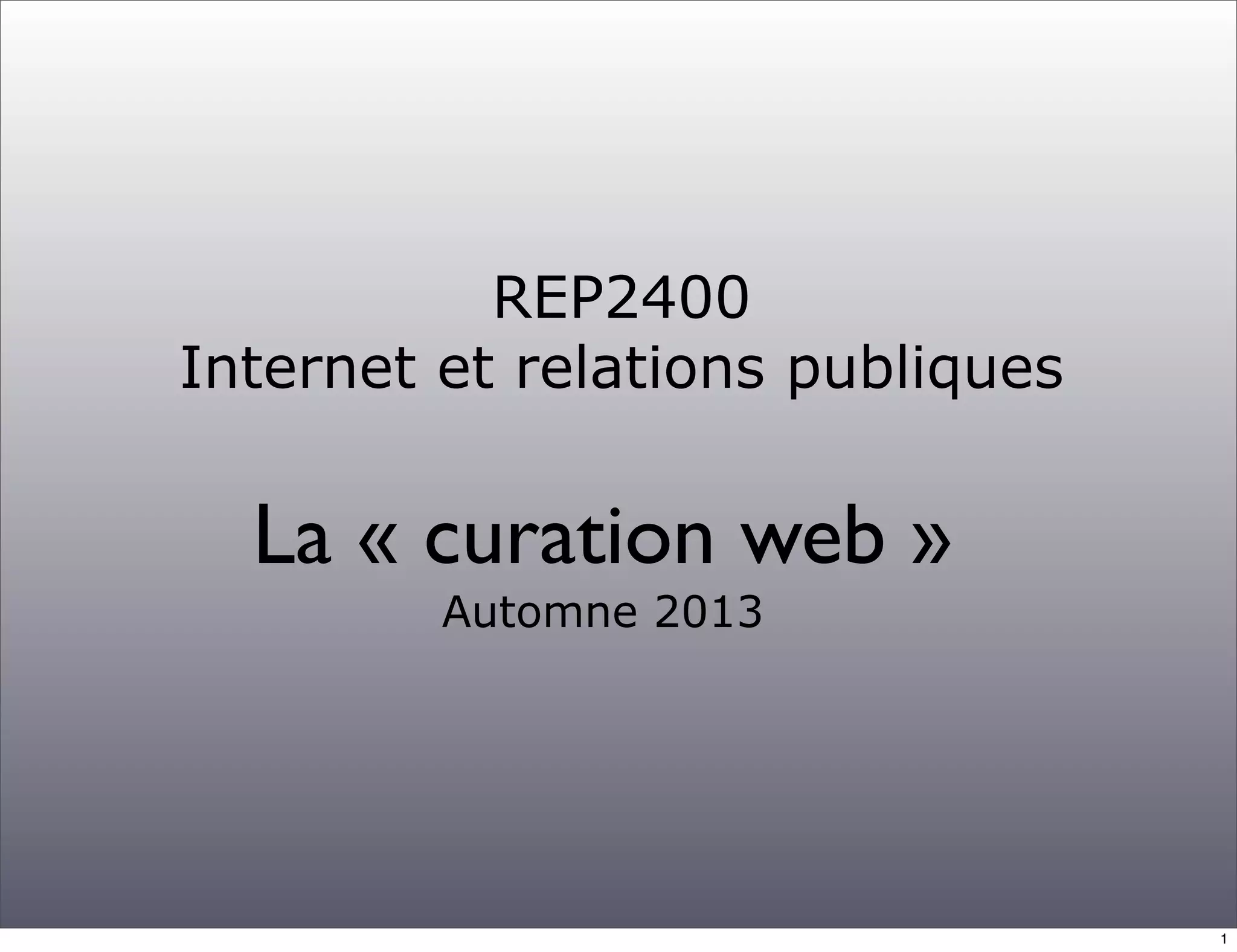 La curation web est une pratique de sélection, d'éditorialisation et de partage de contenu pour contrer l'infobésité dans un environnement d'information surabondante. Elle nécessite un processus de recherche et de sélection rigoureux, et elle peut prendre diverses formes allant de l'agrégation à l'élévation d'informations. En entreprise, elle permet de valoriser des contenus et d'améliorer la communication interne et externe.
