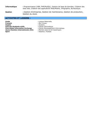 Oussama Sahri est un technicien produit expérimenté ayant travaillé chez Lear Corporation depuis 2013, avec un diplôme en génie mécanique et électrique de l'université Hassan 1ère. Ses compétences incluent l'analyse technique, la gestion de projets et la programmation, ainsi que des expériences professionnelles dans le domaine de l'automobile et des systèmes électriques. Il est également impliqué dans des activités associatives et possède des compétences en langues étrangères.