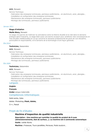 Mohamed Troudi, 23 ans, de nationalité tunisienne, est diplômé en génie mécanique avec une expérience en conception et fabrication mécanique. Il a effectué plusieurs stages et emplois dans le domaine technique, notamment dans la fabrication et l'installation d'enseignes lumineuses et la conception d'une machine d'inspection de qualité industrielle. Il maîtrise des logiciels tels que SolidWorks et CATIA et est aussi intéressé par la technologie et le sport.