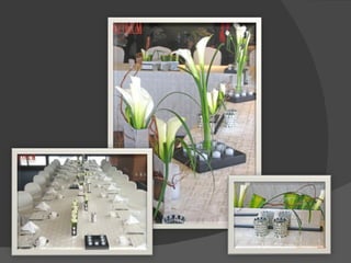 Le document présente des nouveautés et tendances pour les événements en 2010, mettant en avant des éléments décoratifs comme des coupes géantes, des lampes, et des thèmes variés tels que nautique et artistique. Il souligne l'importance des détails et des styles de table pour impressionner les invités. Les événements se déroulent dans plusieurs villes du Québec.