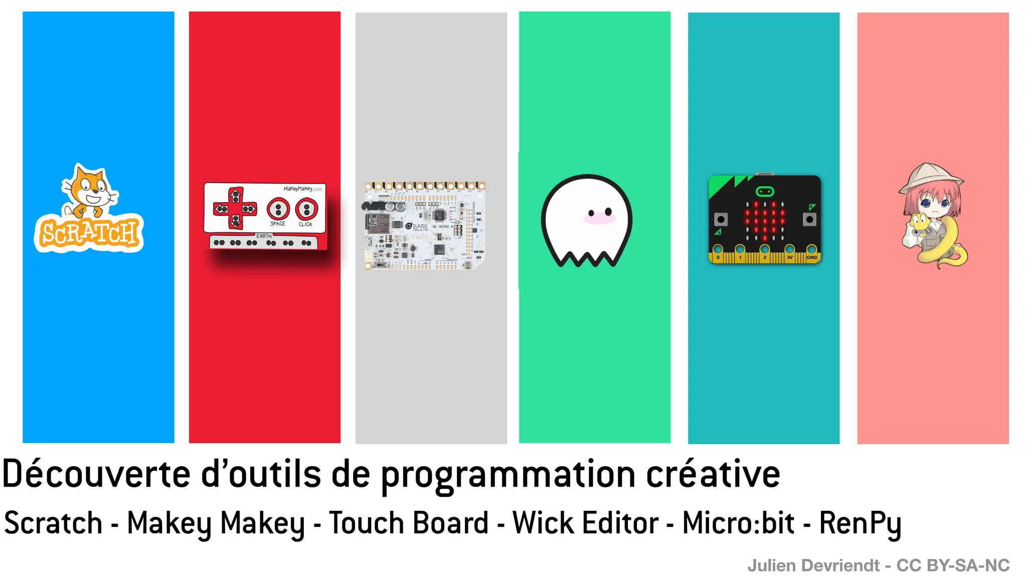 Le document présente des outils de programmation créative tels que Scratch, Makey Makey et Touch Board, visant à stimuler la créativité et à accompagner la littératie numérique. Il détaille également comment ces outils permettent de créer des installations interactives et d’initier à la programmation de manière ludique. Des ateliers sont suggérés pour encourager l'expression personnelle et l'apprentissage collaboratif à travers la technologie.
