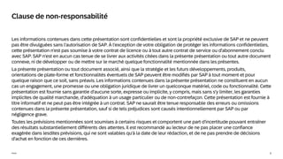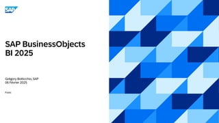 La présentation traite de la stratégie de maintenance et du développement de SAP BusinessObjects BI jusqu'en 2030 et au-delà, mettant en avant l'investissement continu dans cette solution de Business Intelligence. Elle souligne les modifications des systèmes de support et les nouvelles fonctionnalités à venir, comme les améliorations de Web Intelligence et les options d'exportation. Les utilisateurs sont encouragés à se tenir informés des prévisions et des mises à jour tout en gardant à l'esprit les risques associés aux prévisions.