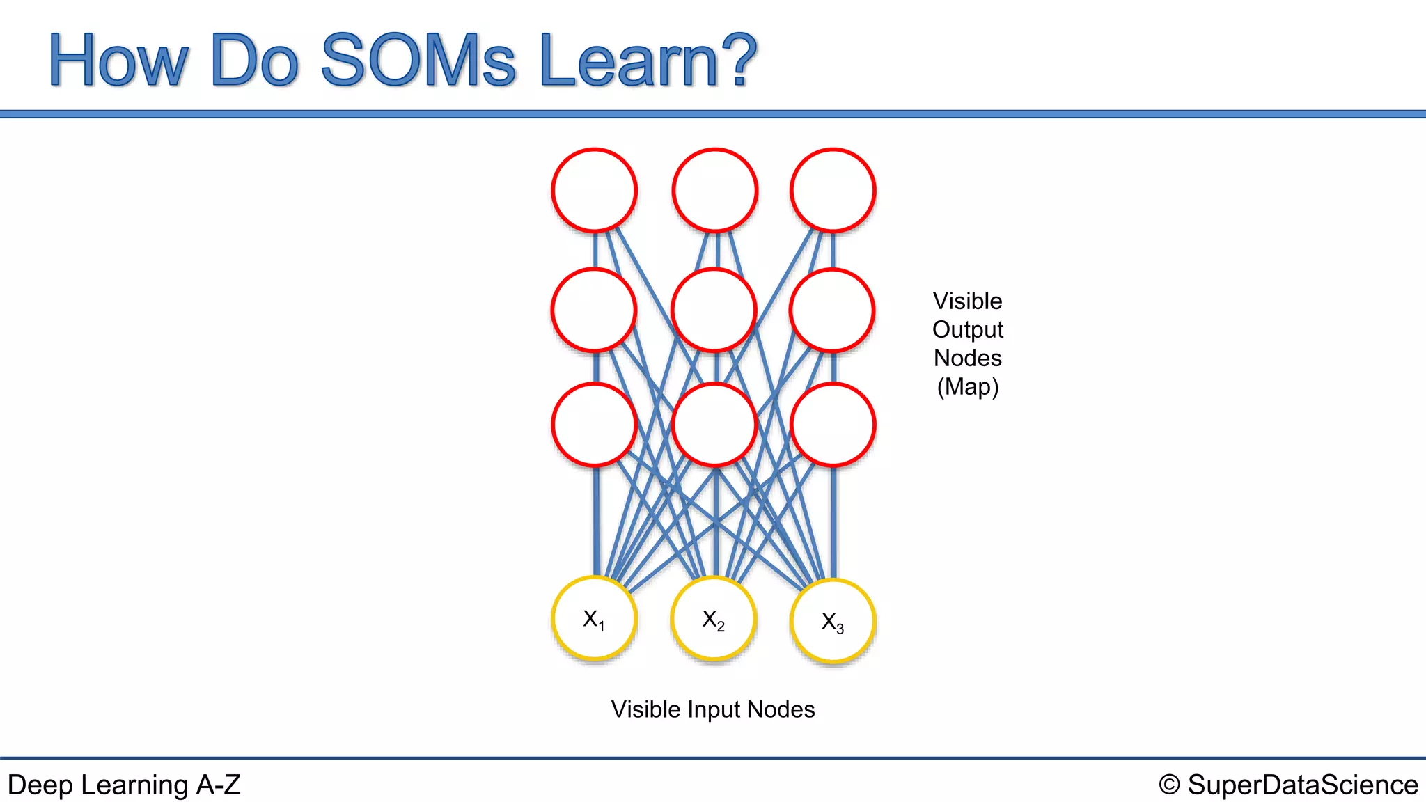 Le document traite des nœuds visibles en apprentissage profond, illustrés par des exemples de distances calculées entre les entrées et les poids. Il présente un ensemble de nœuds avec leurs poids et distances par rapport à des valeurs d'entrée, indiquant ainsi l'importance de ces relations pour le traitement des données. La structure souligne également le processus itératif d'apprentissage pour ajuster les poids en fonction des distances mesurées.