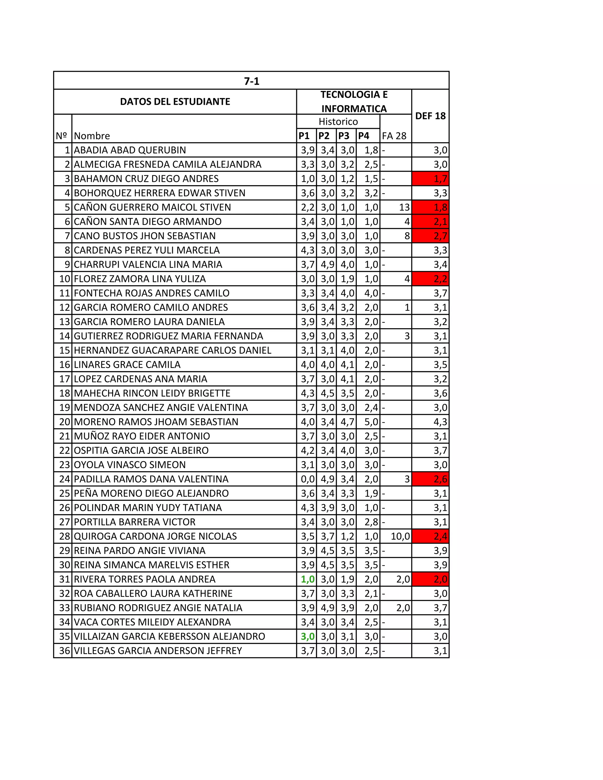 Le document présente une liste d'étudiants avec leurs performances évaluées sur différents critères. Chaque ligne fournit les notes d'un étudiant avec des prénom et nom, suivi de plusieurs valeurs notées. Les informations se terminent par une mention de la technologie et de l'informatique dans le contexte des données étudiantes.