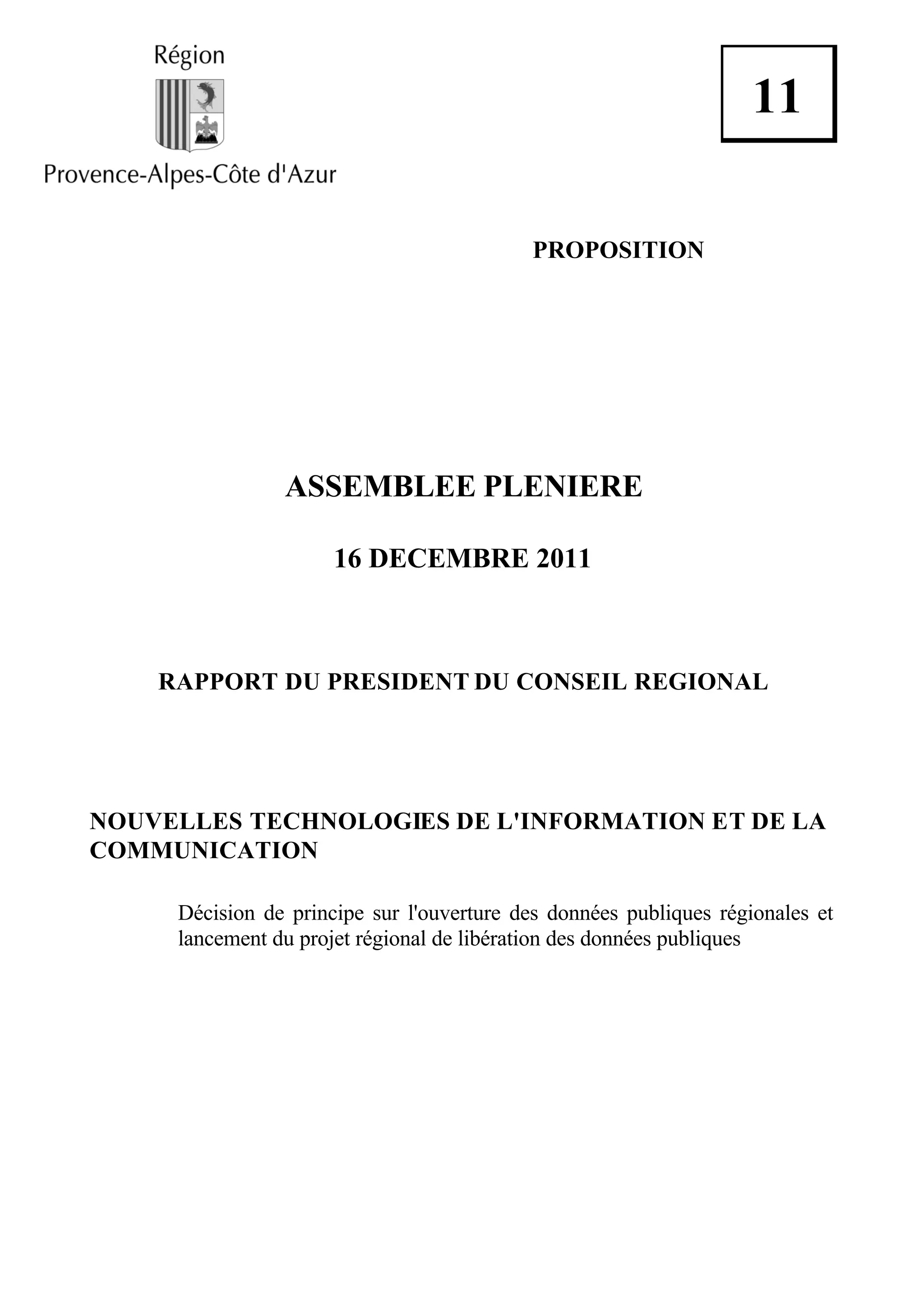 La région Provence-Alpes-Côte d'Azur s'engage dans un projet de libération des données publiques, visant à améliorer l'accès et la réutilisation de ces données pour favoriser l'innovation et le développement de nouveaux services. Ce programme, qui se déploiera en 2012, inclura la création d'un catalogue régional et le lancement d'un concours d'applications innovantes. En collaborant avec ses partenaires, la région ambitionne d'être un acteur clé dans le cadre européen de partage des données publiques, en mettant l'accent sur des thématiques comme l'énergie, l'environnement et le tourisme.