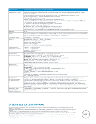 Le modèle Dell FX100 est un terminal zéro client basé sur la technologie PC-over-IP, conçu pour des solutions de bureau virtuel à distance qui allient performance et simplicité. Il supporte différents types de connecteurs sans nécessiter la gestion complexe de périphériques, tout en offrant une communication bidirectionnelle avec des stations de travail Dell. La solution est idéale pour centraliser des ordinateurs dans des environnements sécurisés et reste compatible avec divers systèmes d'exploitation.