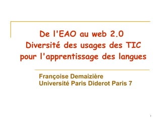 Le document explore l'évolution des technologies de l'information et de la communication (TIC) pour l'apprentissage des langues, en particulier à travers le prisme du passage de l'enseignement assisté par ordinateur à l'ère du Web 2.0. Il met en lumière l'importance de l'autoformation et de l'autonomie des apprenants, tout en discutant des rôles des enseignants et des diverses configurations pédagogiques possibles. Enfin, il aborde l'accessibilité et la qualité des dispositifs d'apprentissage à distance, soulignant la nécessité d'adapter l'enseignement aux réalités contemporaines.