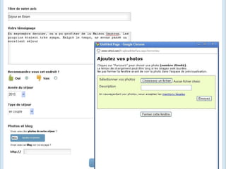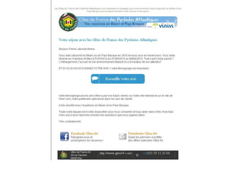 Le document concerne des réunions liées aux chambres d’hôtes dans plusieurs localités (Sauveterre, Gan, Hasparren, Saint Etienne de Baïgorry) entre le 22 novembre et le 2 décembre 2010. Il mentionne également des avis clients provenant de sites comme gites64.com et Tripadvisor, ainsi qu'un blog pour les propriétaires appelé dispohote.
