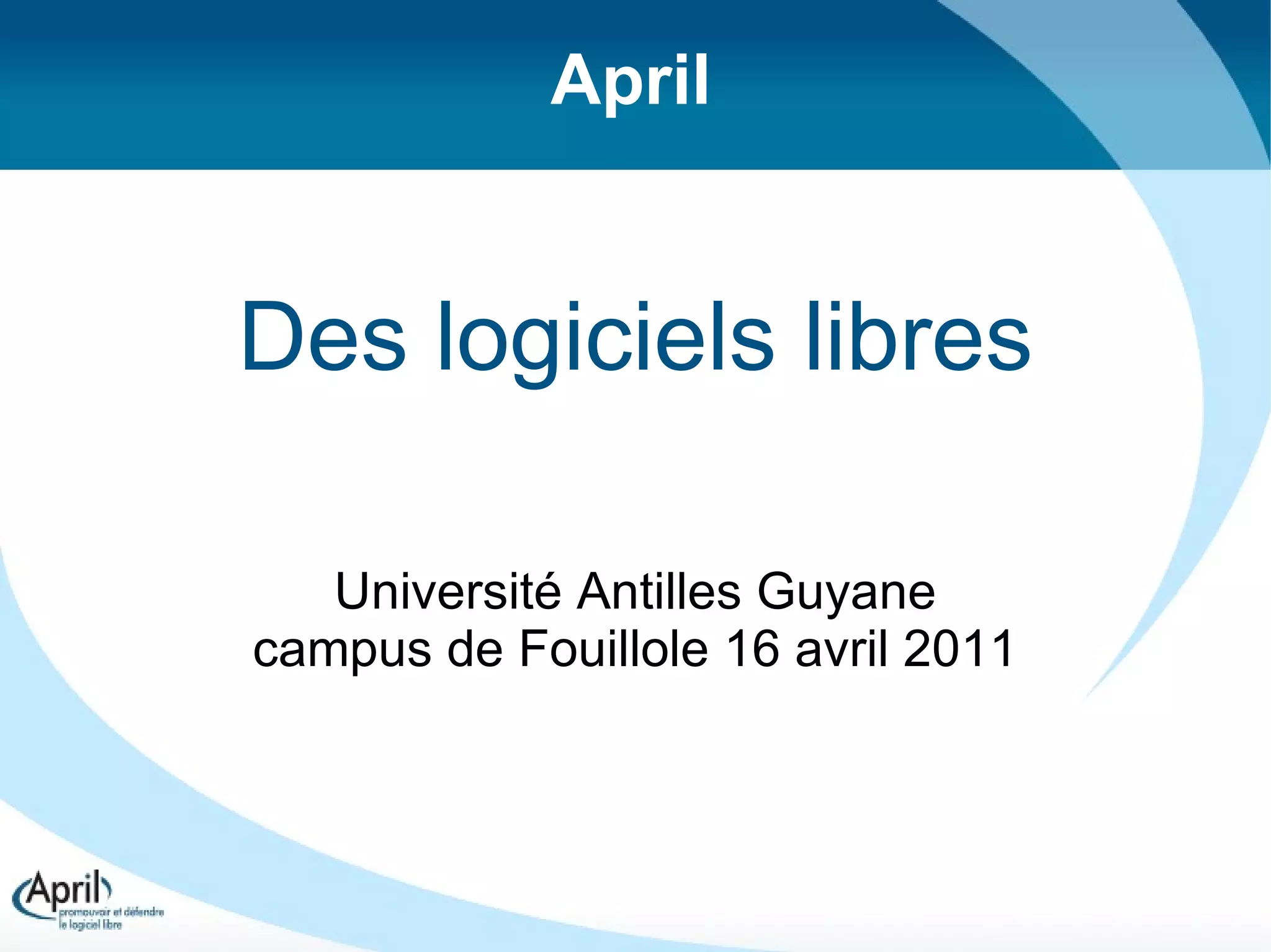 La présentation aborde les principes fondamentaux des logiciels libres, définis par quatre libertés essentielles qui protègent les utilisateurs et encouragent la collaboration. Elle clarifie également des idées reçues sur les logiciels libres et non libres, soulignant que ces derniers empêche la coopération et impose des limites aux utilisateurs. Le document souligne l'importance des formats de fichiers ouverts et la différence entre les modèles de logiciels privées et libres.