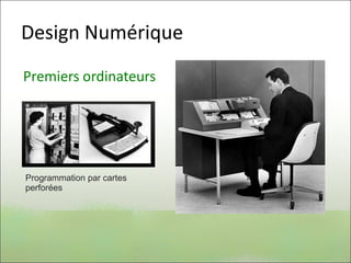 Le document traite de l'évolution du design numérique depuis les premiers ordinateurs jusqu'aux interfaces graphiques modernes, en mettant l'accent sur l'utilité et l'utilisabilité des systèmes. Il aborde également l'importance de l'expérience utilisateur (UX) et les défis associés à la recherche en design, notamment la nécessité de centrer le design sur l'utilisateur tout en tenant compte des facteurs émotionnels et esthétiques. Enfin, il évoque l'historique du design, le lien entre art et technologie, et les méthodologies de conception qui cherchent à rationaliser ce domaine.