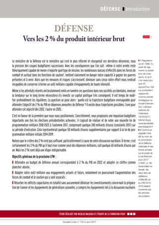 Le document plaide pour un budget de défense de 2 % du PIB d'ici 2022, en réponse à un environnement sécuritaire de plus en plus menaçant. Il souligne la nécessité d'augmenter les effectifs militaires et d'aligner les dépenses sur les enjeux contemporains, tout en alertant sur les conséquences des réductions d'effectifs précédentes. Enfin, il appelle à un investissement budgétaire significatif dans une nouvelle loi de programmation militaire, dépassant les précédents engagements.