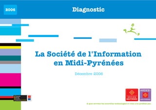 Le document présente un diagnostic de la société de l'information en Midi-Pyrénées, articulé autour du développement des technologies de l'information et de la communication (TIC) dans la région. Il aborde les enjeux liés à l'accès à Internet, au haut débit, et aux usages des nouvelles technologies par les citoyens, les collectivités et les entreprises. Les résultats montrent une nécessité d'amélioration continue des infrastructures et d'accompagnement des acteurs locaux pour une meilleure appropriation des outils numériques.