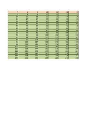 Le document présente une série de séquences de nombres avec des relations multiplicatives et additive. Il illustre des motifs numériques en utilisant des étapes progressives. Ces séquences semblent être organisées pour montrer des multiplications systématiques et des additions successives.
