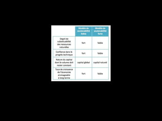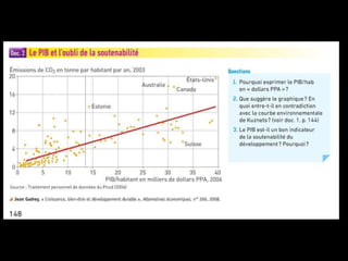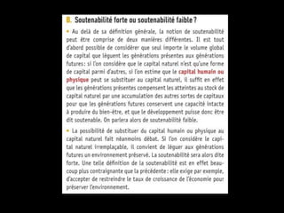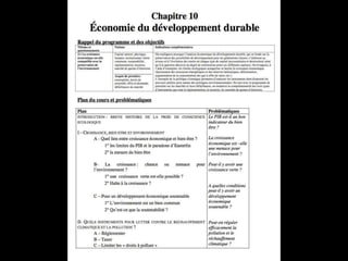 Le chapitre traite de la compatibilité entre la croissance économique et la préservation de l'environnement, en examinant l'analyse économique du développement durable et les limites écologiques liées à la croissance. Il raconte l'évolution historique de la prise de conscience environnementale et les divers rapports qui ont souligné les enjeux écologiques depuis les années 1970, tout en évoquant les opportunités que la croissance peut offrir pour l'environnement. Enfin, il présente différents instruments politiques pour lutter contre le réchauffement climatique et promouvoir un développement soutenable.