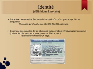 Le document traite de l'identité numérique, définissant son importance et les implications sur la vie privée, notamment les risques liés à la publication d'informations et d'images sans consentement. Il aborde également le cyber-harcèlement, ses formes et les conséquences pour les victimes, en évoquant les lois en vigueur et les sanctions encourues. Enfin, il soulève des questions sur l'utilisation des réseaux sociaux et l'importance de discuter de ces sujets avec les parents.