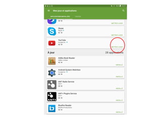 Le document présente un atelier d'initiation à l'utilisation des tablettes, abordant la configuration, le téléchargement et la gestion des applications. Il détaille également les principes de navigation sur l'appareil ainsi que la gestion du compte et des mises à jour logicielles. Enfin, il mentionne des applications utiles et leur installation, tout en conseillant sur la sécurité lors du téléchargement.