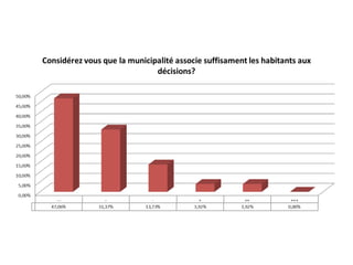 Le document présente les résultats d'un questionnaire sur divers aspects de la vie à Fonsorbes, notamment l'action sociale, la culture et le développement économique. Les élus remercient les participants et soulignent l'importance de leur contribution pour le programme à venir. Un appel à voter est lancé pour les élections des 23 et 30 mars.