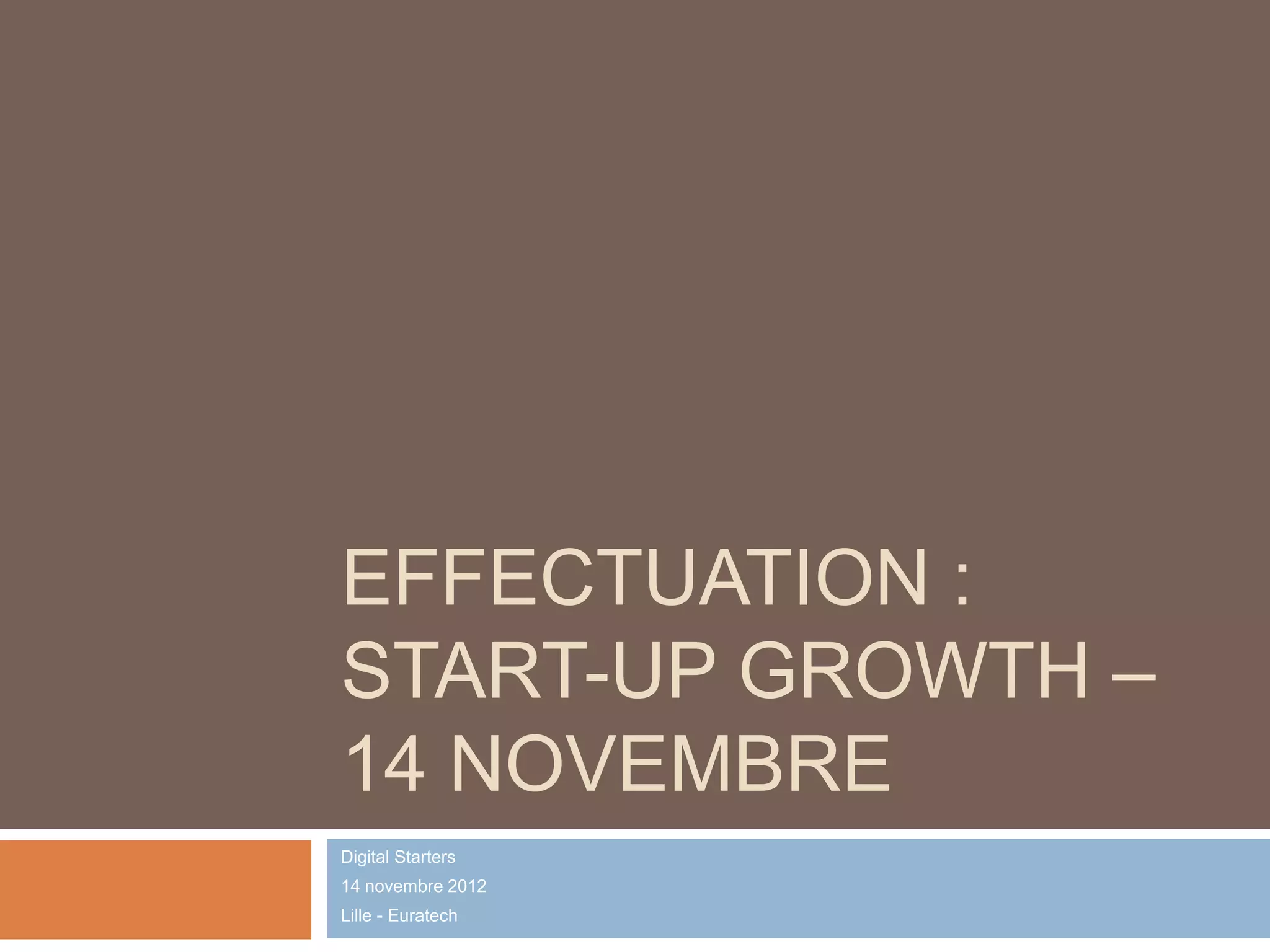 Le document traite des stratégies de croissance pour les start-ups, en soulignant l'importance de démarrer avec peu de capital et de rester agile. Il encourage à établir un réseau de confiance et à transformer des idées en opportunités. Des principes tels que 'gérer par engagements' et l'adaptabilité face aux risques sont également abordés.
