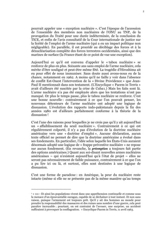 Le document analyse 60 ans de dissuasion nucléaire, marqués par des tournants historiques comme l'invention de l'arme thermonucléaire et la prise de conscience des dangers de la guerre nucléaire. Malgré des crises telles que celles en Iran et en Corée du Nord, le tabou nucléaire se renforce et les nouvelles puissances nucléaires adoptent une logique de dissuasion. La France, quant à elle, maintient une doctrine nucléaire en évolution, face à divers défis stratégiques et politiques.