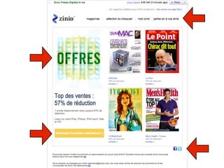Le document présente divers outils de marketing web, incluant le search, le display et l'emailing, en expliquant des concepts clés tels que le coût par mille (CPM) et le taux de clics (CTR). Il fournit également des stratégies d'emailing ciblé pour augmenter la durée des séjours dans un hôtel, ainsi que des critères de succès comme les taux d'ouverture et de clics. Enfin, il aborde l'importance des réseaux sociaux dans le marketing digital.