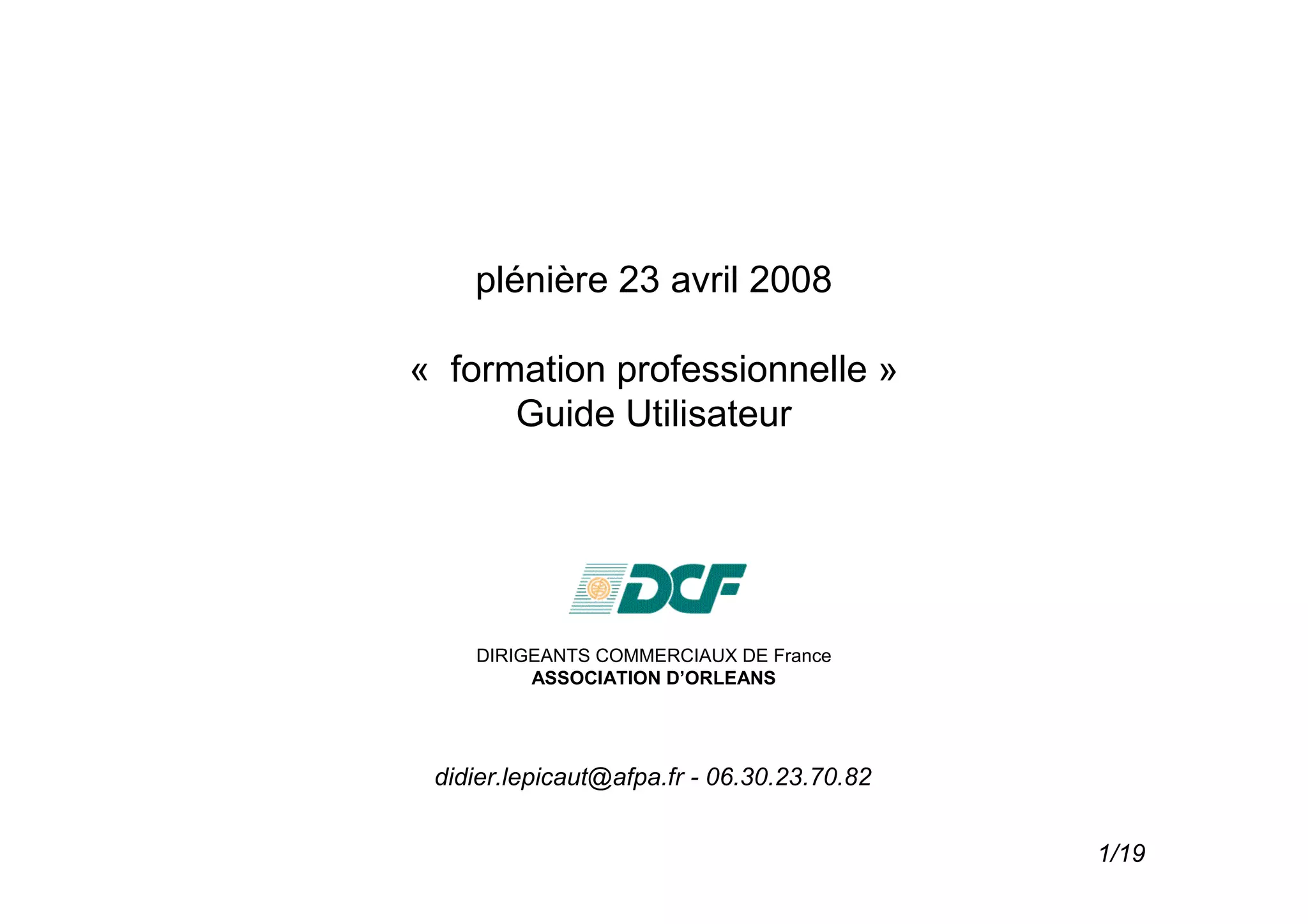 Le guide utilisateur sur la formation professionnelle présente les acteurs, financements et certifications en lien avec le marché du travail. La mondialisation, les changements démographiques et les réformes du marché influencent les emplois et la gestion des ressources humaines. Il souligne également l'importance de la collaboration entre salariés et entreprises dans l'apprentissage tout au long de la vie et la nécessité de moderniser le cadre législatif de la formation professionnelle.