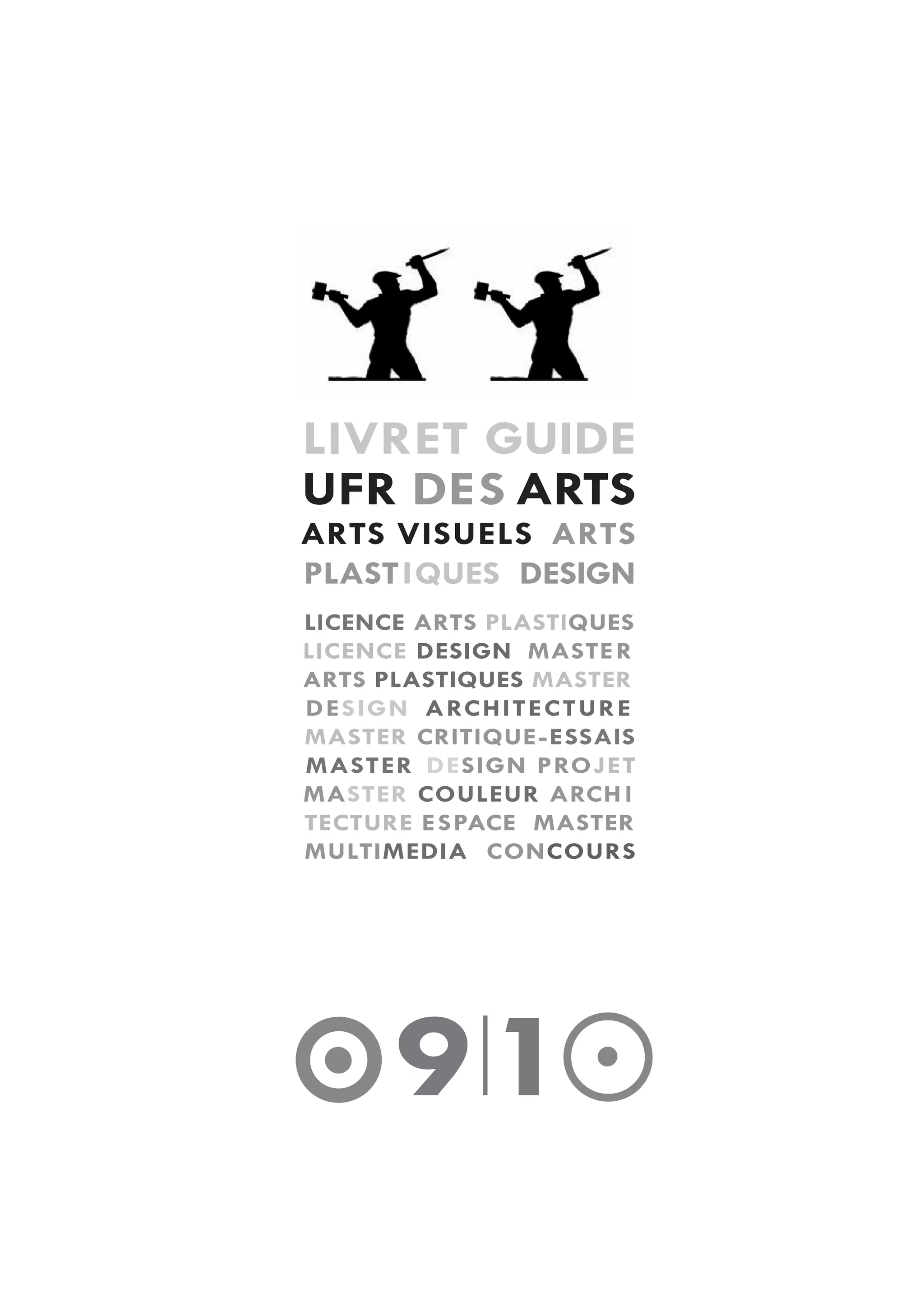 Le document présente un guide complet pour les cursus de licence et de master en arts visuels, arts plastiques et design à l'UFR des arts pour l'année universitaire 2009-2010. Il inclut des informations sur les calendriers, les conditions d'admission, les crédits ECTS, et les différents programmes offerts. Des détails sur la validation des langues et les certifications, comme le CLES et le C2i, sont également fournis.