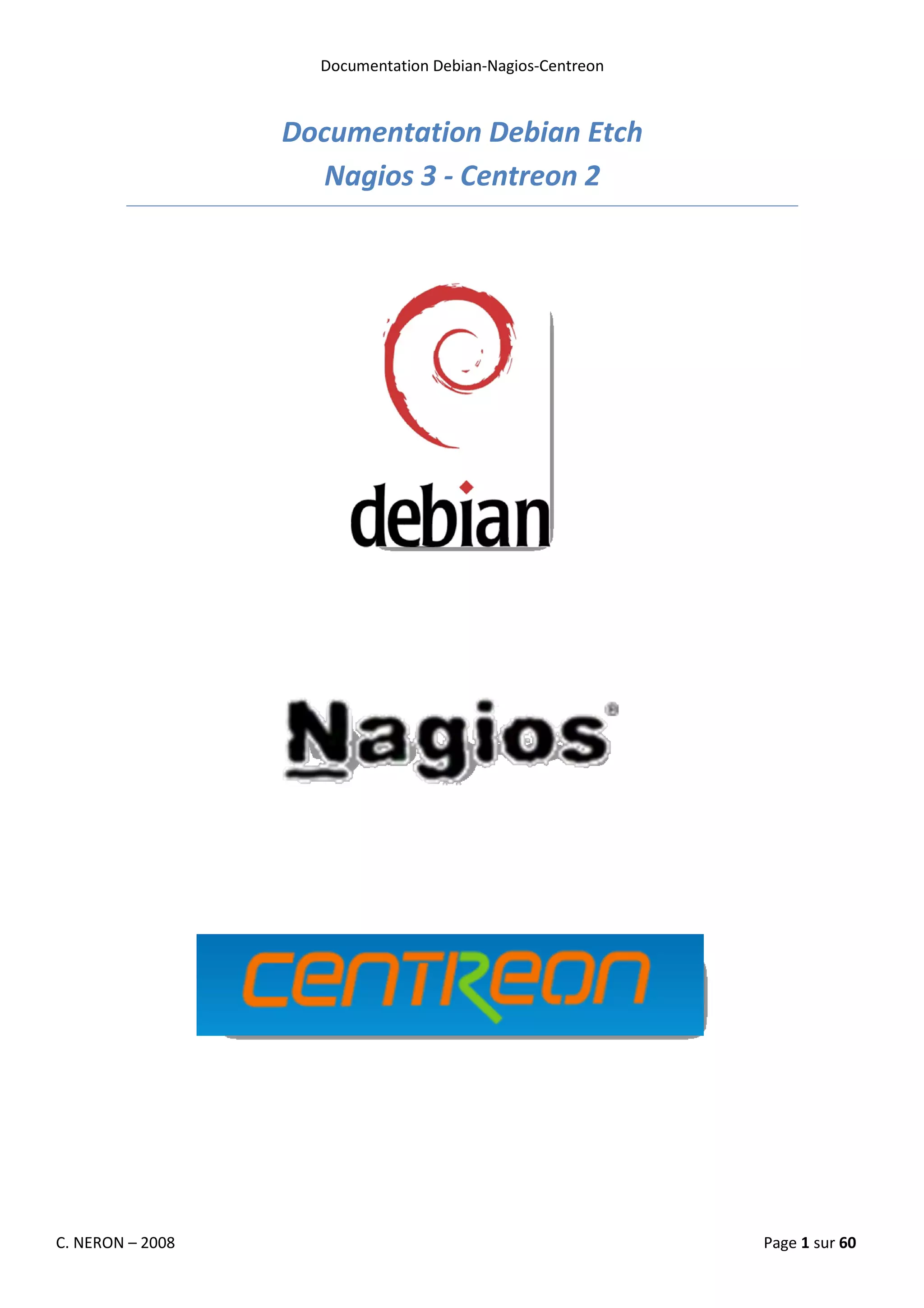 Le document fournit une documentation détaillée sur l'installation et la configuration de Nagios et Centreon sur Debian, ainsi que sur les outils nécessaires tels que NDOUtils et les processus de sauvegarde et restauration. Il inclut des sections sur l'installation pas à pas, la configuration des utilisateurs, des communautés, des hôtes, ainsi que des templates pour une installation simplifiée. En outre, le document aborde les problèmes possibles et les solutions associées.