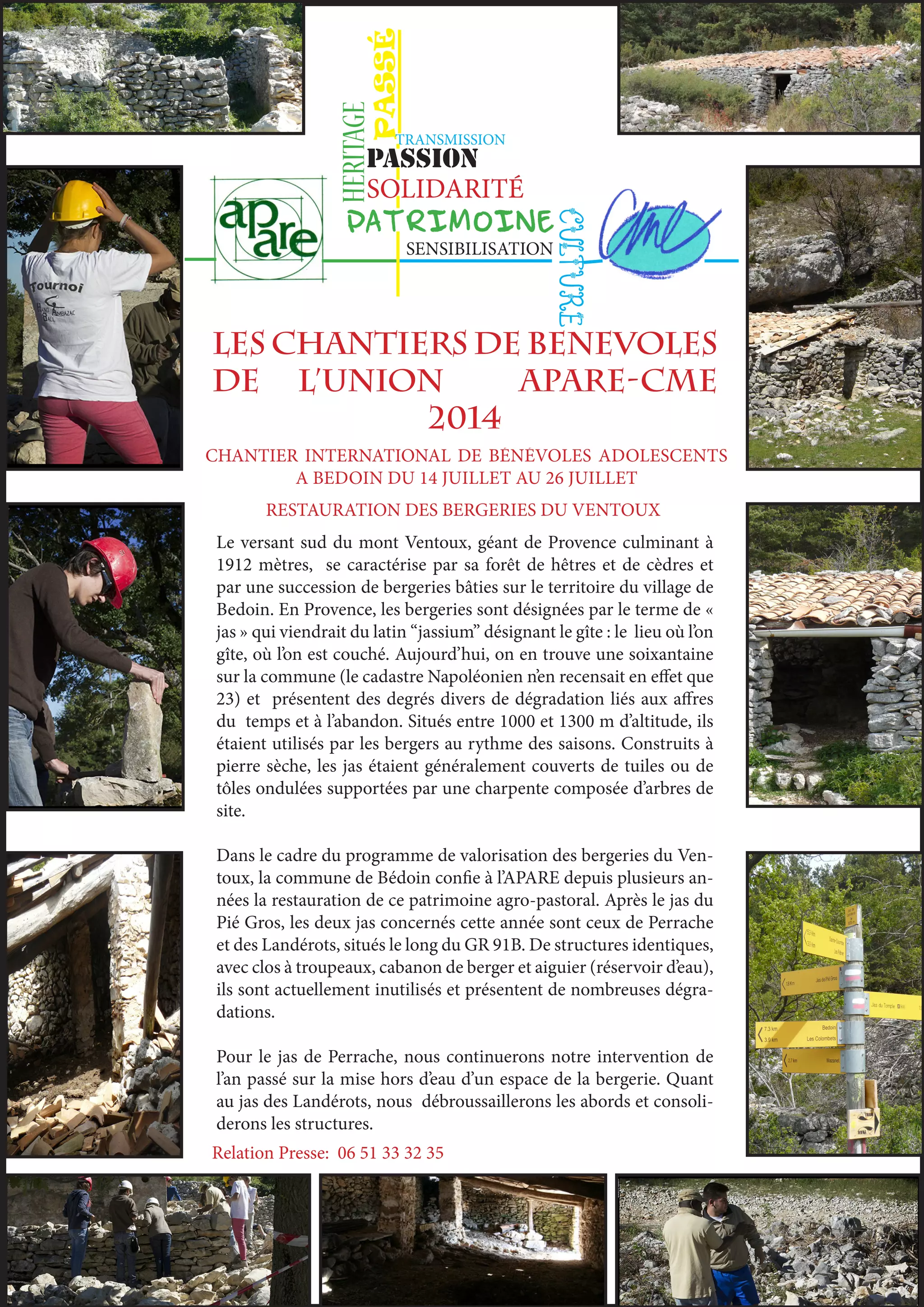 Le document décrit divers chantiers internationaux de bénévoles adolescents consacrés à la restauration et à la valorisation du patrimoine en Provence, notamment la restauration de bergeries et de sentiers. Des activités sont organisées dans plusieurs communes et sont axées sur la sensibilisation au patrimoine et à l'agro-tourisme, tout en impliquant les jeunes dans des projets bénéfiques pour l'environnement. En parallèle, des événements sont prévus pour promouvoir l’éco-citoyenneté en Méditerranée, abordant les défis environnementaux et la participation citoyenne.