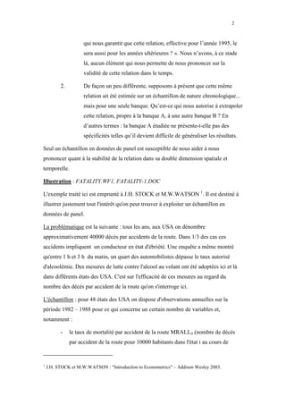 Le document traite des modèles d'estimation sur des données de panel, soulignant l'importance de ces données pour analyser les relations entre les variables dans le temps et l'espace. À travers des exemples, il démontre que les données de panel permettent de mieux évaluer la stabilité des relations observées par rapport aux échantillons chronologiques ou en coupe instantanée. Enfin, il présente la structure générale des modèles et une typologie de méthodes d'estimation adaptées aux données de panel.