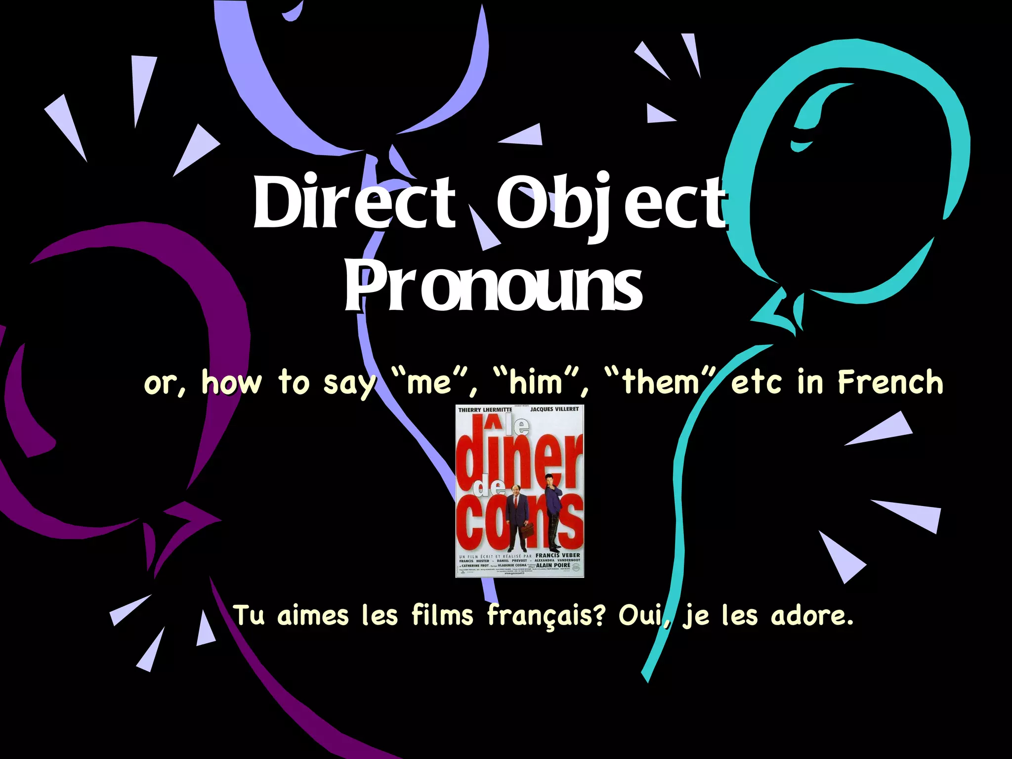 Le document explique l'utilisation des pronoms objets directs en français, montrant comment les remplacer par des pronoms tels que 'me', 'te' et 'le'. Il couvre également l'emplacement des pronoms dans différentes constructions grammaticales, y compris le présent simple et le passé composé, ainsi que des exemples négatifs. Des exercices pratiques sont fournis pour renforcer la compréhension et l'application des pronoms dans des phrases.