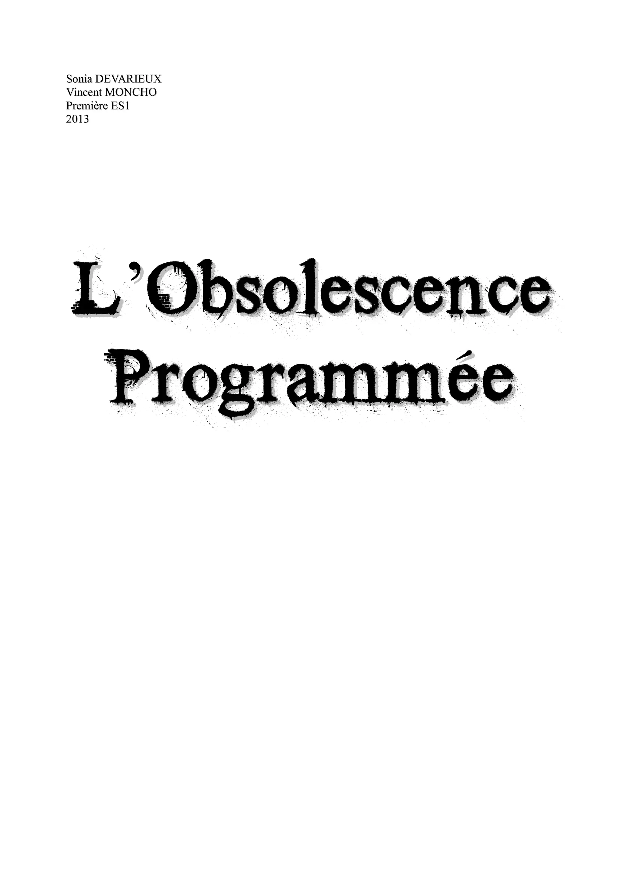 L'obsolescence programmée désigne une stratégie visant à réduire la durée de vie des produits pour inciter les consommateurs à les remplacer plus souvent, augmentant ainsi les déchets et l'épuisement des ressources naturelles. Bien que ce concept soit récent en Europe, ses pratiques remontent aux années 1930, avec des exemples notables tels que le cartel de Phoebus et le modèle de Detroit. Les consommateurs, souvent inconscients de ce phénomène, deviennent victimes d'une consommation encouragée par la publicité et des innovations superficielles.