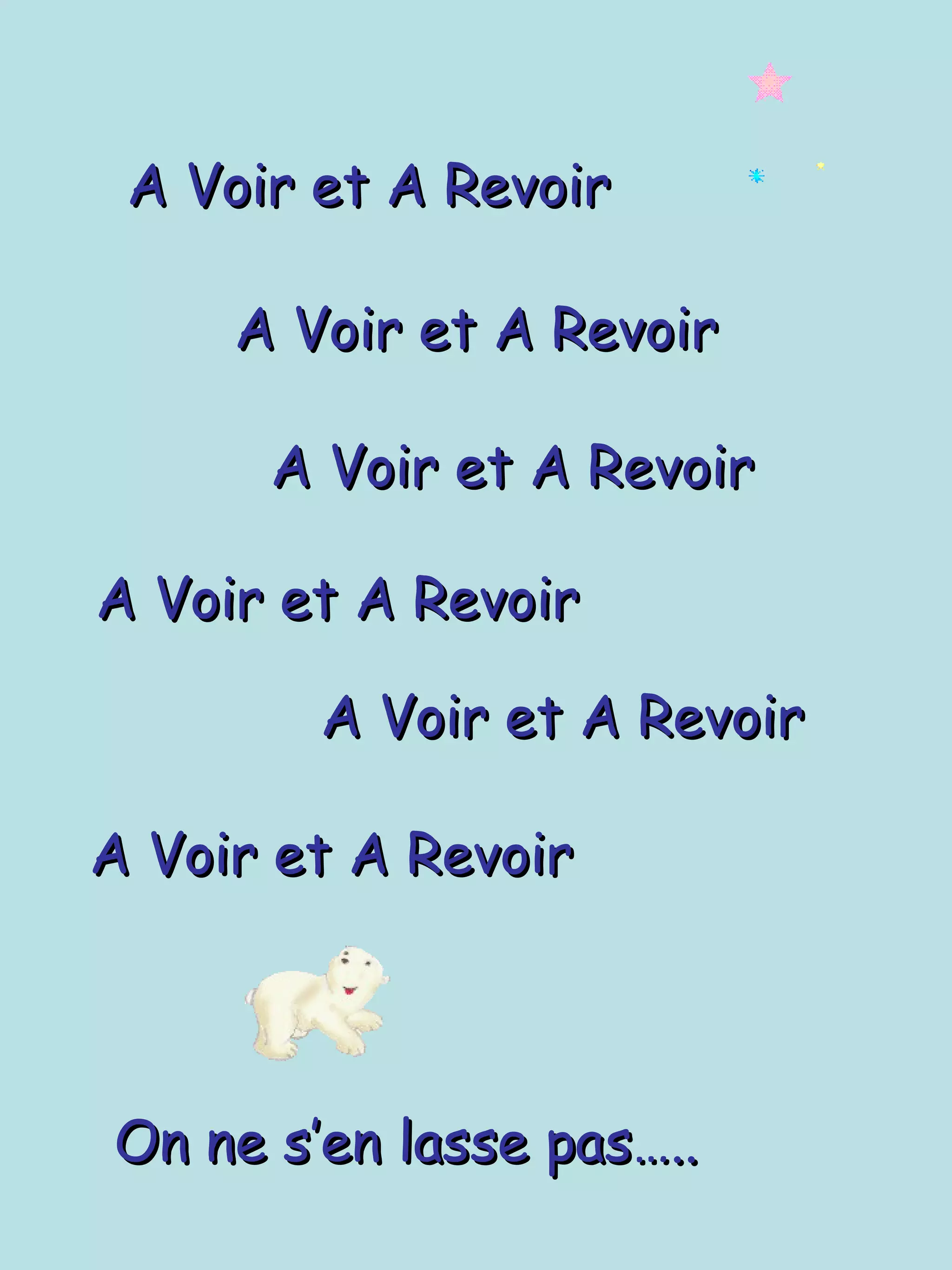 Le document exprime une appréciation répétée pour quelque chose qui mérite d'être vu et revu. L'auteur souligne que l'on ne s'en lasse jamais. Il se termine par un souhait de bonne semaine.