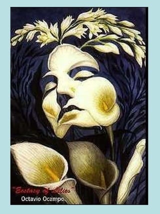 L'image présente 9 personnages à découvrir, dont un homme chevauchant un âne qui forme le visage du peintre. Elle illustre également un chevalier luttant contre un dragon, laissant le spectateur hésiter entre voir une vieille femme ou une jeune. Ce jeu visuel souligne les pensées torturées de l'artiste.