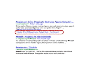 Le document traite de l'importance et de l'implémentation de microformats, RDFa et microdatas pour améliorer la présentation des informations sur les moteurs de recherche. Il donne des exemples spécifiques tels que vCard, hRecipe, et hCalendar tout en discutant des défis rencontrés lors de leur intégration, notamment des problèmes de validité et de conflits. Enfin, il mentionne des cas pratiques pour illustrer ces concepts, comme coup de pouce et recettes.qc.ca.