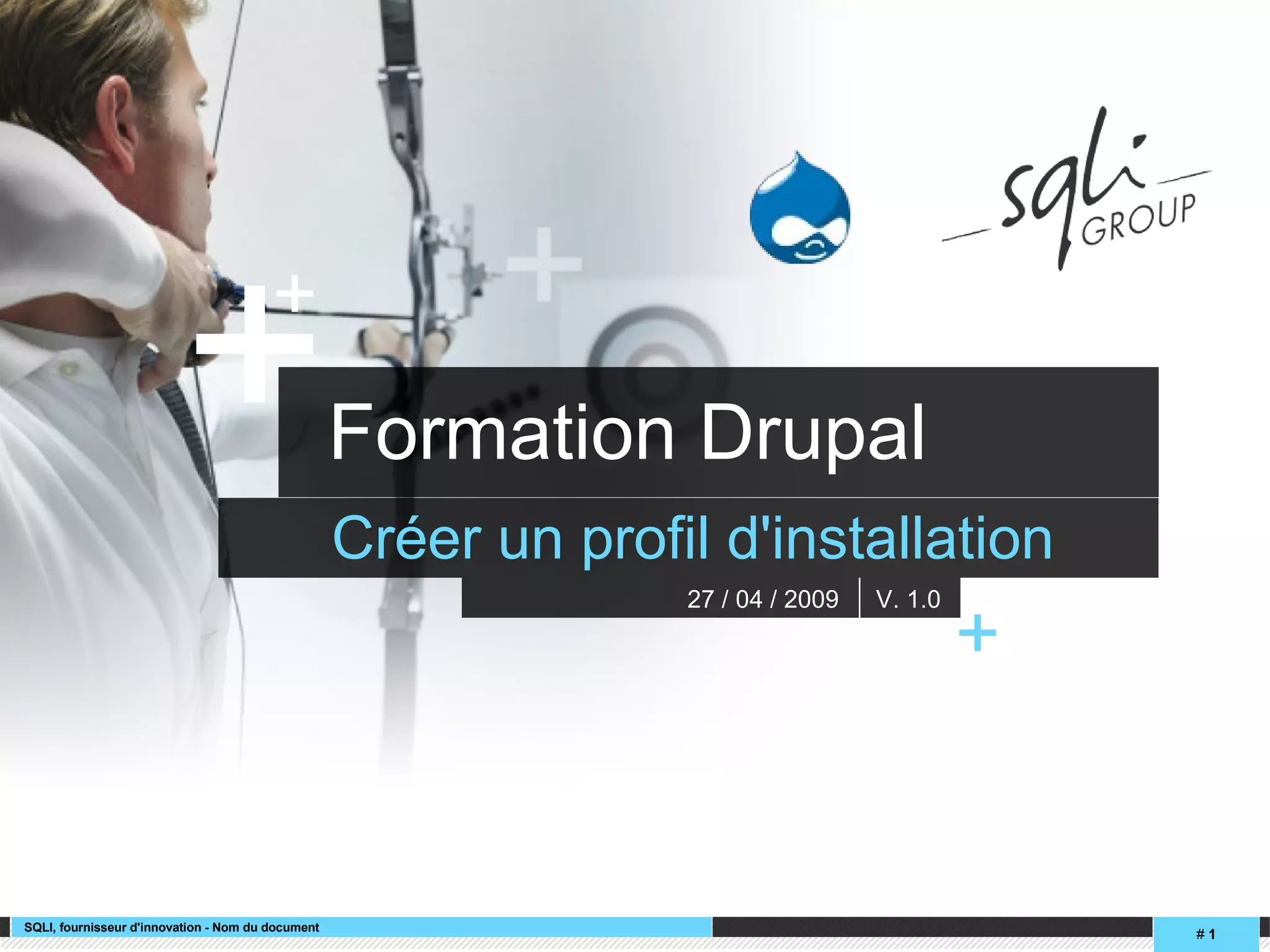 Le document présente la création de profils d'installation dans Drupal, expliquant leur utilité pour automatiser l'activation de thèmes et modules lors du déploiement de sites. Il détaille les fichiers obligatoires et optionnels à inclure dans un profil, ainsi que des fonctions essentielles pour définir les modules à installer et exécuter des tâches. Des liens vers des exemples de profils d'installation et des exercices pratiques sont également fournis pour approfondir la compréhension.
