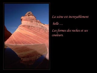 La Vague en Arizona est décrite comme un miracle de la nature, à travers ses magnifiques formes et couleurs de roches. L'entrée vers ce site offre une expérience presque féerique, semblable à un monde des 'mille et une nuits'. La lumière du soleil illuminant le canyon crée des phénomènes éclatants de lumière et de couleurs.