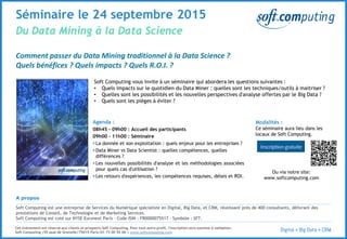 Le séminaire organisé par Soft Computing aborde la transition du data mining traditionnel vers la data science, en soulignant les compétences requises et les nouvelles perspectives d'analyse offertes par le big data. Il explore les enjeux, méthodologies et retours d'expérience relatifs à cette évolution. Des experts partageront des stratégies pour gérer les défis de l'analyse de données et optimiser le retour sur investissement.