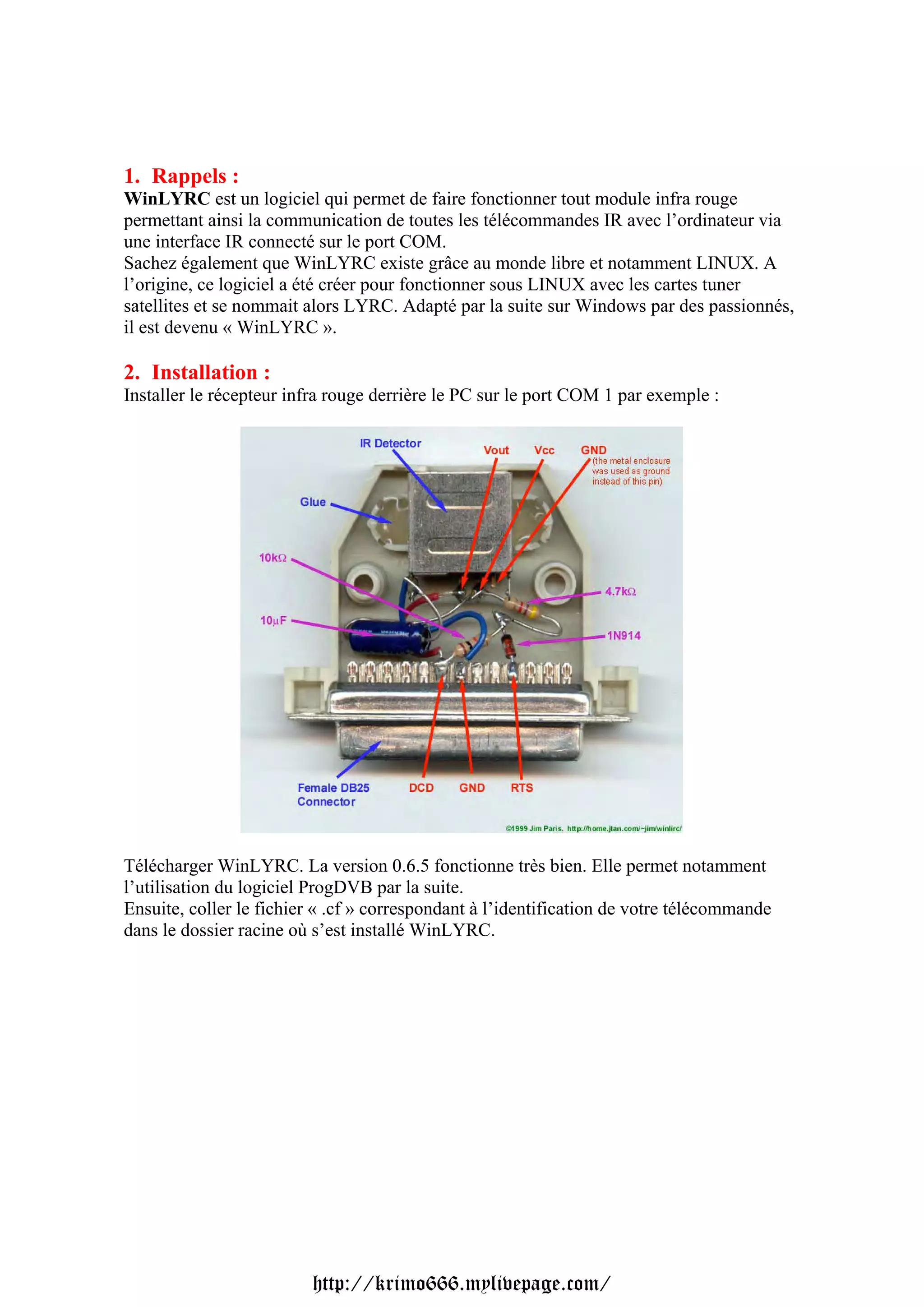Winlyrc est un logiciel permettant la communication entre télécommandes infrarouges et ordinateurs via un port COM, initialement conçu pour Linux et adapté sur Windows. L'installation nécessite de placer le récepteur IR et de configurer les fichiers .cf pour les télécommandes, avec des exemples fournis pour différentes marques. Des instructions détaillées pour l'installation et la création des fichiers de configuration sont également incluses dans le document.