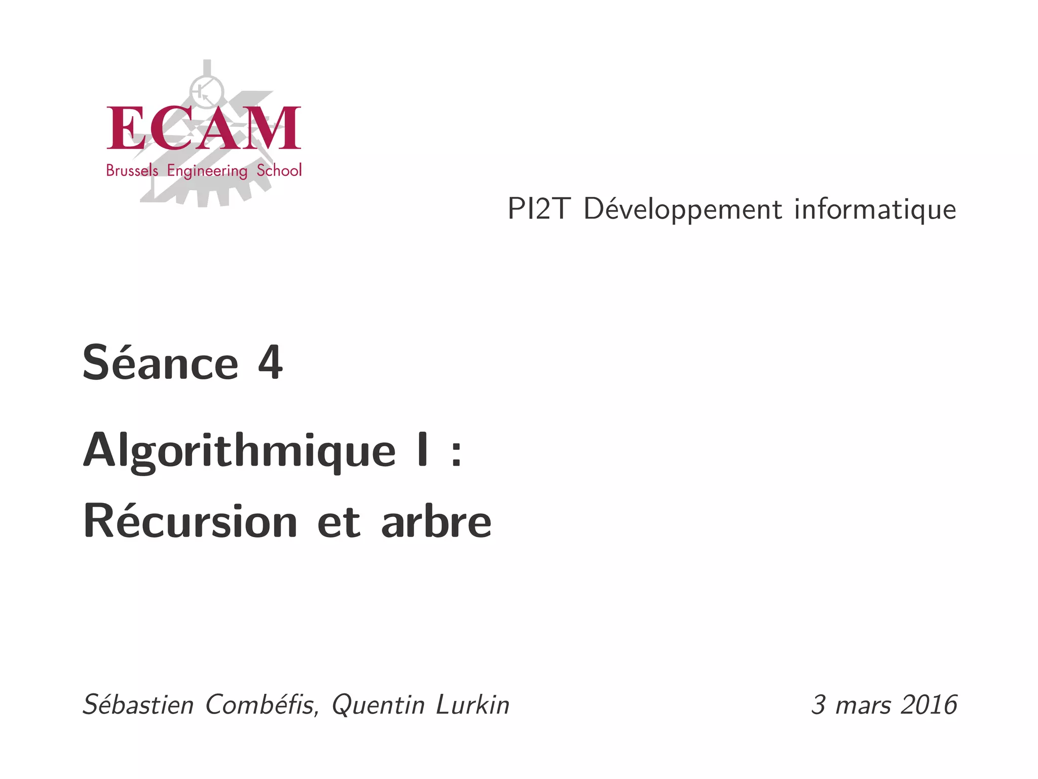 Le document présente des concepts d'algorithmique, en se concentrant sur la récursion et les structures de données en arbre. Il explique les principes de base des algorithmes, leur spécification, ainsi que leur implémentation en utilisant différents langages de programmation. Des exemples concrets, comme le calcul de la factorielle et la recherche d'éléments dans une liste, illustrent l'utilisation de la récursion et du backtracking.