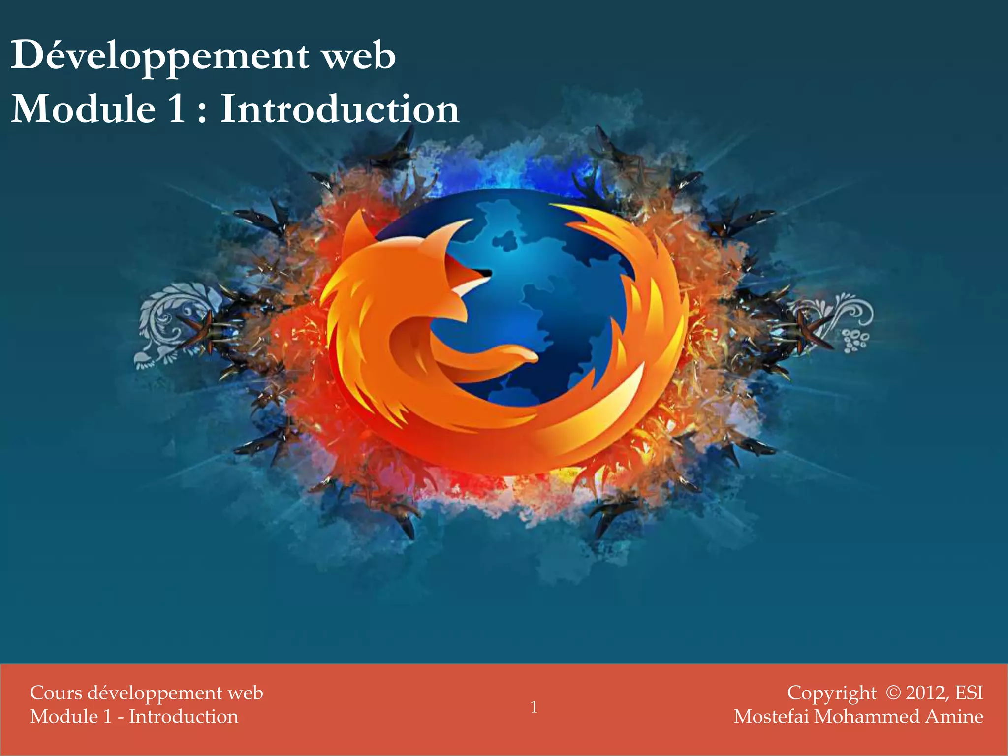 Ce document présente une introduction au développement web, abordant ses technologies, son historique et les outils nécessaires pour créer et gérer un site. Il expose des chiffres significatifs sur Internet, les premières étapes de son développement depuis 1958, ainsi que le fonctionnement des protocoles TCP/IP et HTTP. Enfin, le module suggère des exercices pratiques pour familiariser les étudiants avec les outils de développement web.