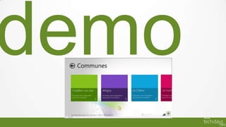 Ce document présente un projet de développement d'application Windows 8 par le groupe Cristal Union, qui est un coopératif agro-industriel. Il décrit les étapes de mise en œuvre, la méthodologie agile adoptée, et les objectifs du projet liés à l'accès au système d'information agricole. Il souligne également l'importance d'une approche de développement flexible et intégrée, ainsi que les bénéfices attendus en termes de qualité et de pérennité de l'architecture logicielle.