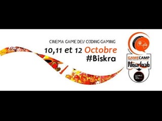Le Gamecamp de Biskra, organisé les 10, 11 et 12 octobre, met en avant la croissance du secteur du jeu vidéo en Afrique avec une population majoritairement jeune. Bacely Yorobi, expert en stratégie numérique et fondateur de Socialspot, présente divers projets de développement comme la Ligue Africaine des Jeux Vidéos et des formations en design et programmation. Le document explore également les types de jeux vidéo et les outils de développement disponibles, tout en soulignant l'importance de la participation de l'Afrique aux compétitions de jeux vidéo international.