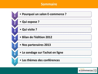 Le salon e-commerce 2013 à Technopark met en avant le développement du e-commerce au Maroc avec des exposants variés allant des solutions de paiement aux outils de création de boutiques en ligne. La première édition a attiré 80 exposants et plus de 4 150 visiteurs, tandis que des conférences aborderont des thèmes comme la sécurité des transactions, le tourisme électronique et les stratégies de marketing digital. En parallèle, un sondage révèle une satisfaction générale des consommateurs pour les achats en ligne, mais souligne des freins liés à la confiance envers les moyens de paiement.